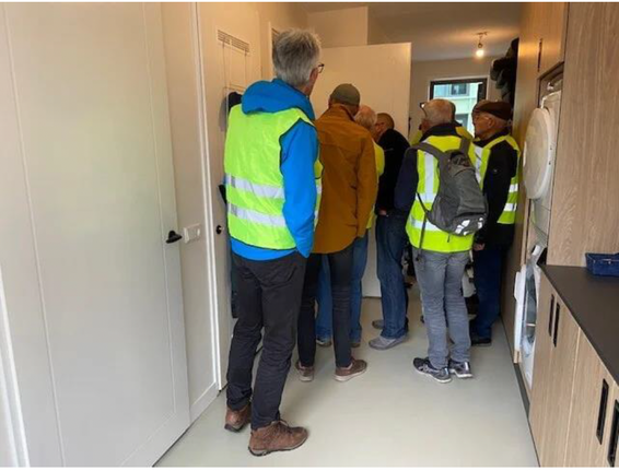 Het 1e onderdeel van de excursie was een bezoek aan de woning van een bewoner. We hebben zijn berging met de warmtepomp bekeken en Coos Schouten gaf uitleg.