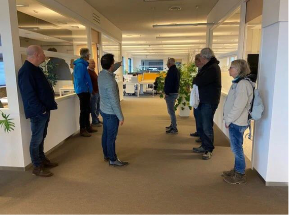 Het laatste deel van de excursie was een rondleiding op het installatiebedrijf van Coos Schouten. Deze bezichtiging gaf een mooi beeld van het bedrijf. Het was indrukwekkend om te zien hoeveel personeel er voor een warmteproject nodig is. De excursie werd afgesloten met een diapresentatie en een toelichting door Coos over het trajectverloop van een warmteproject. Daarnaast vertelde hij ons over de werking van de warmtepomp, met een toelichting over de ‘fietspomp en wappermethode’. Er volgde een uitleg (met tekening) over gas dat door de compressor wordt rondgepompt en tegen een vernauwing (expansieventiel) wordt aandrukt, waardoor warmte ontstaat. Belangrijk is dat het temperatuurverschil, tussen de bron en het afgiftesysteem, zo klein mogelijk wordt gehouden. Daardoor kost het minder elektra en is het rendement het grootst!