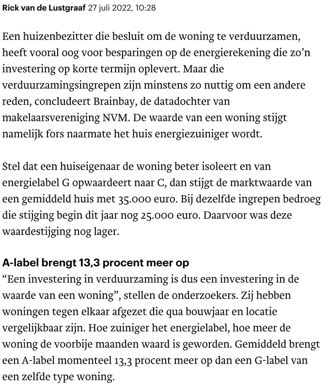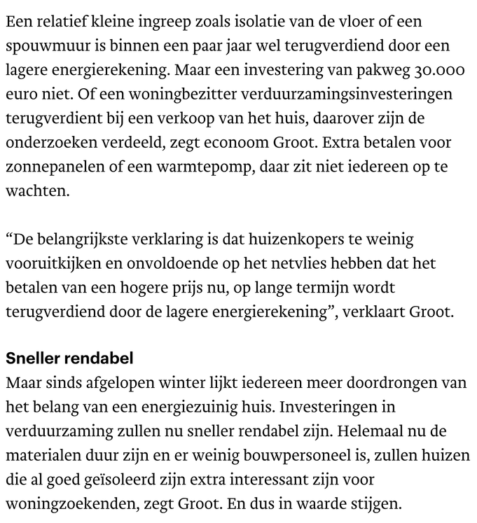 We willen beginnen met de behoefte naar HR++ en triple glas in beeld te gaan brengen. Dat is een maatregel die onder alle omstandigheden zijn vruchten afwerpt, een zogenaamde “No Regret” maatregel. Zoals hiervoor vermeld is, kan men op 3 september aangeven of men geïnteresseerd is in een gezamenlijke offerteaanvraag.